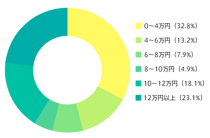 実際には、0~4万円未満の人が最も多く、その次に12万円以上の人が多いので、平均するとだいたい10万円くらいになります。