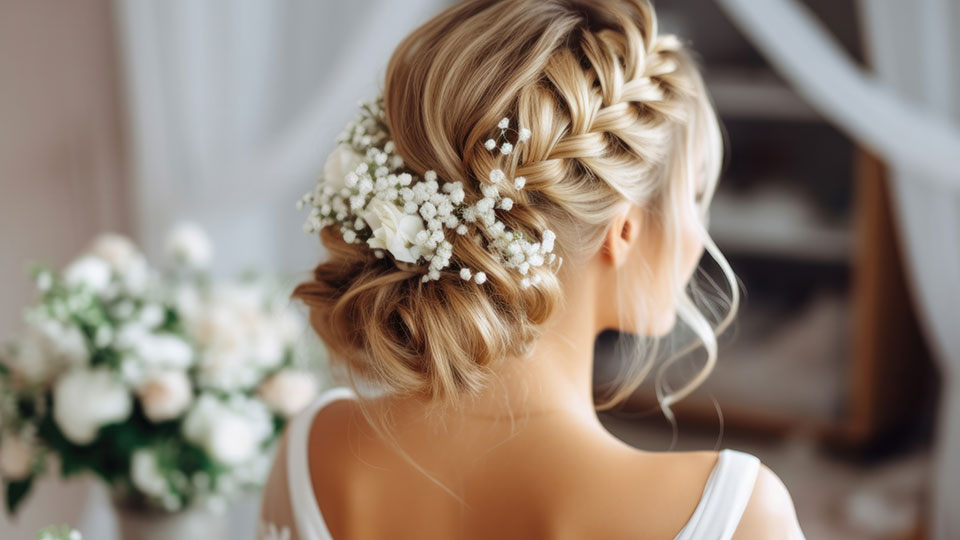 美しいヘアスタイルが顔立ちを引き立て、ドレスとの調和も生まれます。