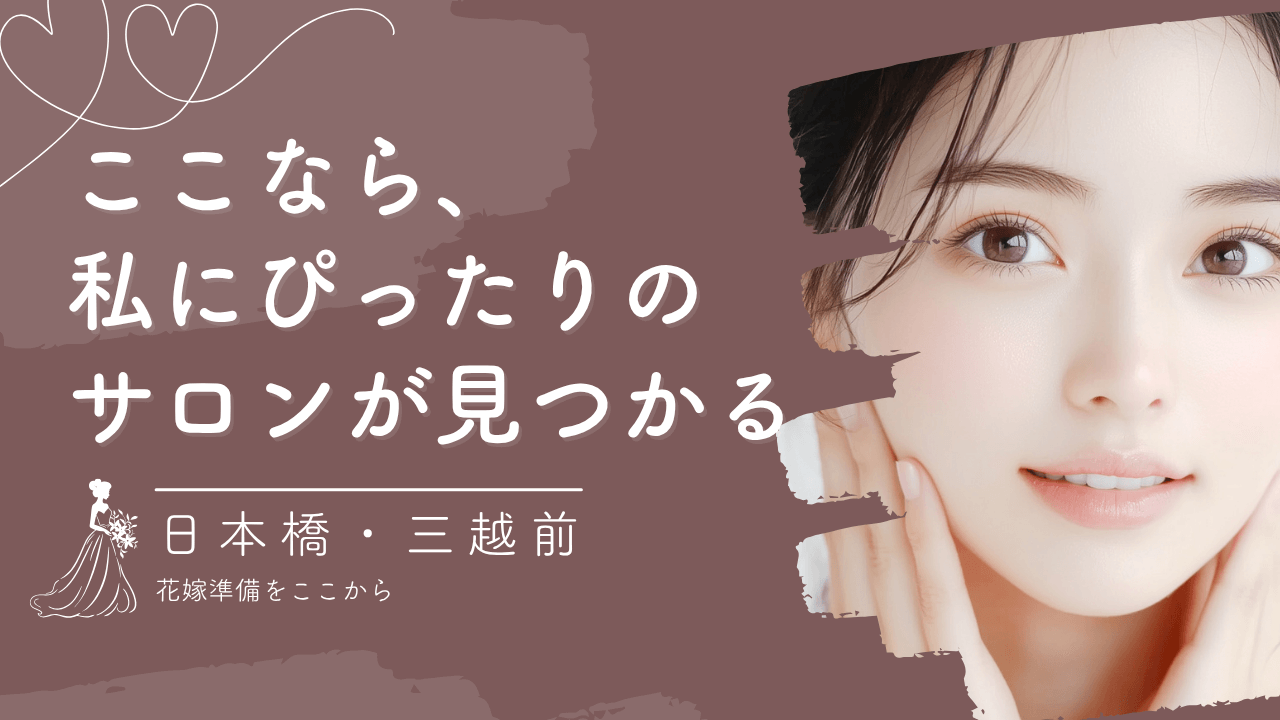 結婚式準備の合間に通うので、駅近や職場からのアクセスが良いサロンは便利です。特に日本橋・三越前エリアは、複数路線が通っていてアクセス抜群。忙しい花嫁でも通いやすい立地を選びましょう。