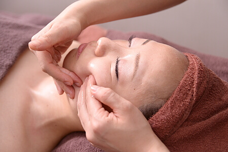 東洋医学に基づいた顔筋マッサージで、たるみ・ゆがみ・むくみをケアしてくれます。お肌の内側から骨格・筋肉を矯正して老廃物の排出を促すので、スッキリしたフェイスラインに。