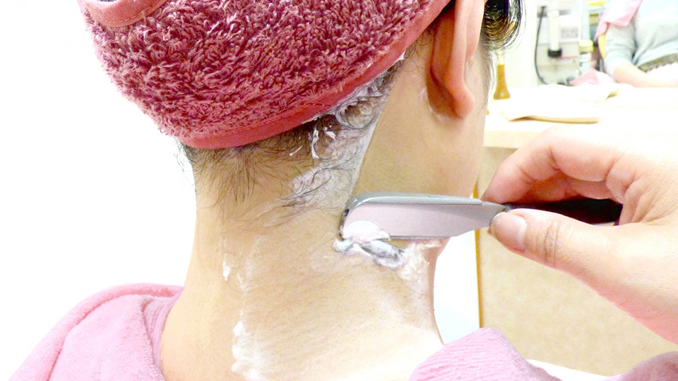 ソフトシェービング&角質除去かレザーシェービングを選べます。イオン導入、マッサージ、肌別パックもついた本格的な体験コースです。